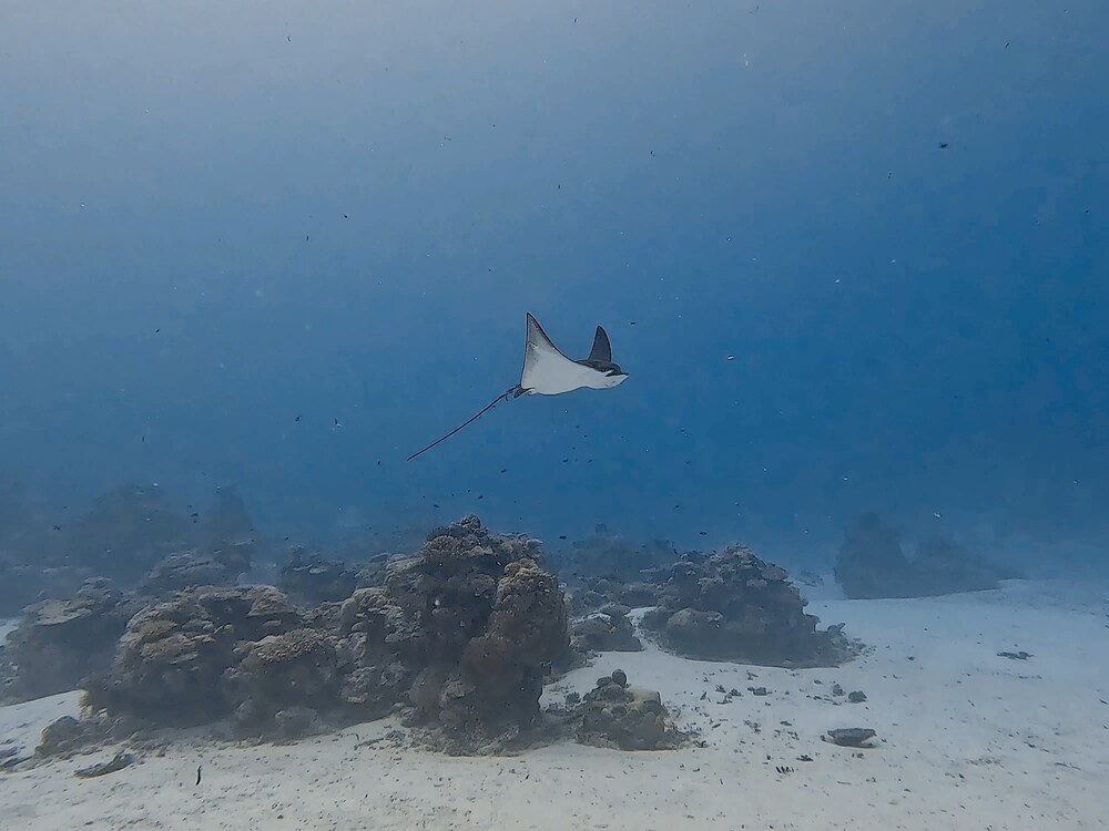 Wer bereits auf den Malediven getaucht ist, weiss, was einen erwartet. Alle anderen haben vermutlich schon zahlreiche Dokumentationen oder YouTube-Videos gesehen. Deshalb ganz kurz: Es ist genial! Die Sicht war in dieser Jahreszeit zwar begrenzt (teilweise 10–25 m), aber dank der hervorragenden Arbeit von Saaz, Wathey und Munkko konnten wir – auch unter erschwerten Bedingungen – viele wunderschöne Tauchgänge erleben. Das Dhoni ist etwas kleiner als bei anderen Booten, bietet aber sämtlichen Komfort. Die Tauchbriefings waren stets informativ, sehr ausführlich, mit handgezeichneten Karten – und einer Prise Humor. Ein besonders grosses Kompliment an Munkko, der während der Reise unsere Ansprechperson an Bord war. Mit deiner aufgestellten, humorvollen und kompetenten Art hast du wesentlich zum Erfolg dieser Reise und zur Gruppendynamik beigetragen – herzlichen Dank!