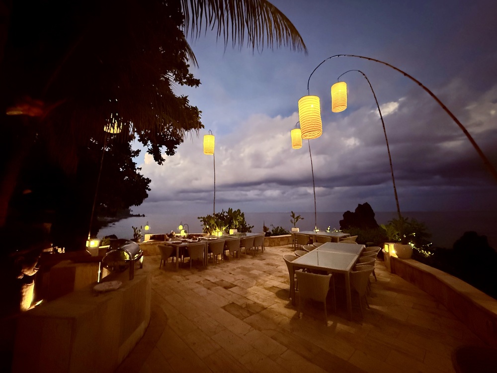 Wir hatten Halbpension gebucht. Zum Frühstück gibt es selbstgebackenes Brot und Brötchen, Marmelade, Eierspeisen, Säfte, Obst, gebratene Nudeln oder Reis. Zum Abendessen kann man zwischen á la Carte und Buffet wählen. Zum Abendessen trifft man sich vorher auf einen Drink und isst dann ab 19:30 Uhr gemeinsam unter freiem Himmel, was mir sehr gut gefallen hat. Man kann aber auch früher oder alleine essen, wenn man keine Lust auf Gesellschaft hat.